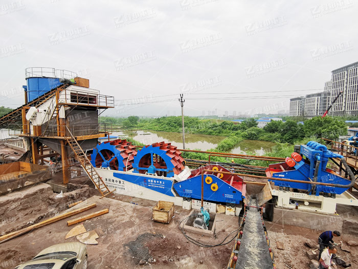 在運轉中,電機經過皮帶輪帶動葉輪進行慢慢的滾動,物料在葉輪的滾動下進行翻滾和沖突,進而去除物料外表掩蓋的雜質,并損壞包覆在砂粒上的水汽層,便利于脫水,然后一起在加水,構成強壯的水流,將雜質及粉塵帶走,完成清洗工作。